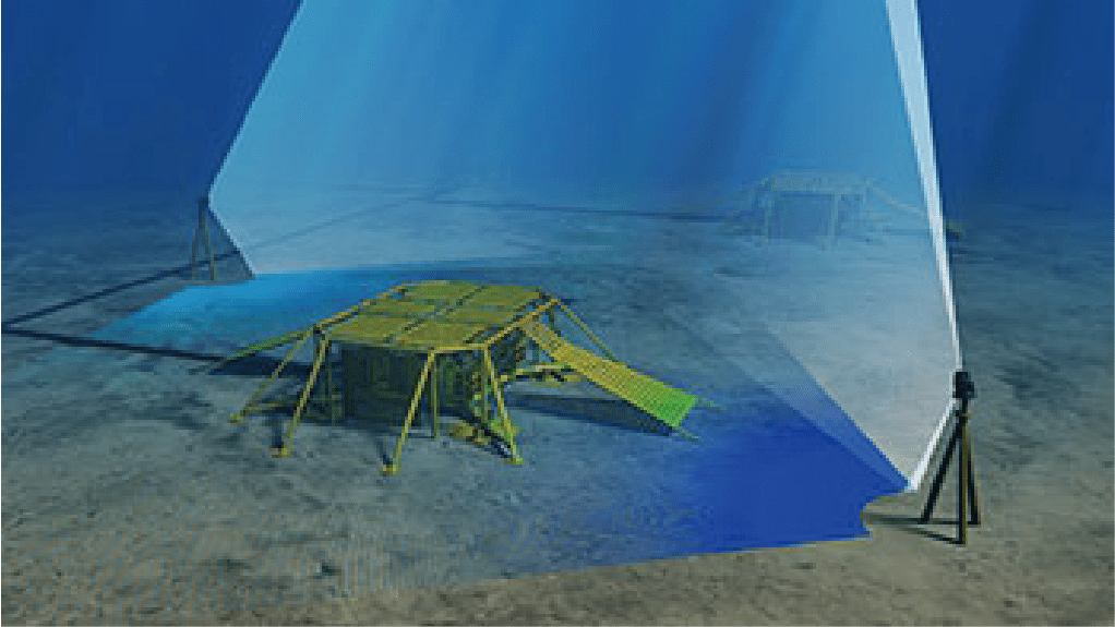 BlueView的水下三維掃描聲吶系統(tǒng)能通過聲學(xué)方法把復(fù)雜的水下結(jié)構(gòu)和海底三維細(xì)節(jié)圖清晰地展現(xiàn)出來。此系統(tǒng)很像三維激光掃描儀,只不過它用高頻聲波來替代激光,這樣保證了BuleView的三維掃描儀即使在渾濁的環(huán)境下也能獲取高分辨率的水下數(shù)據(jù)。通??梢院退聰z影系統(tǒng)配合使用。
